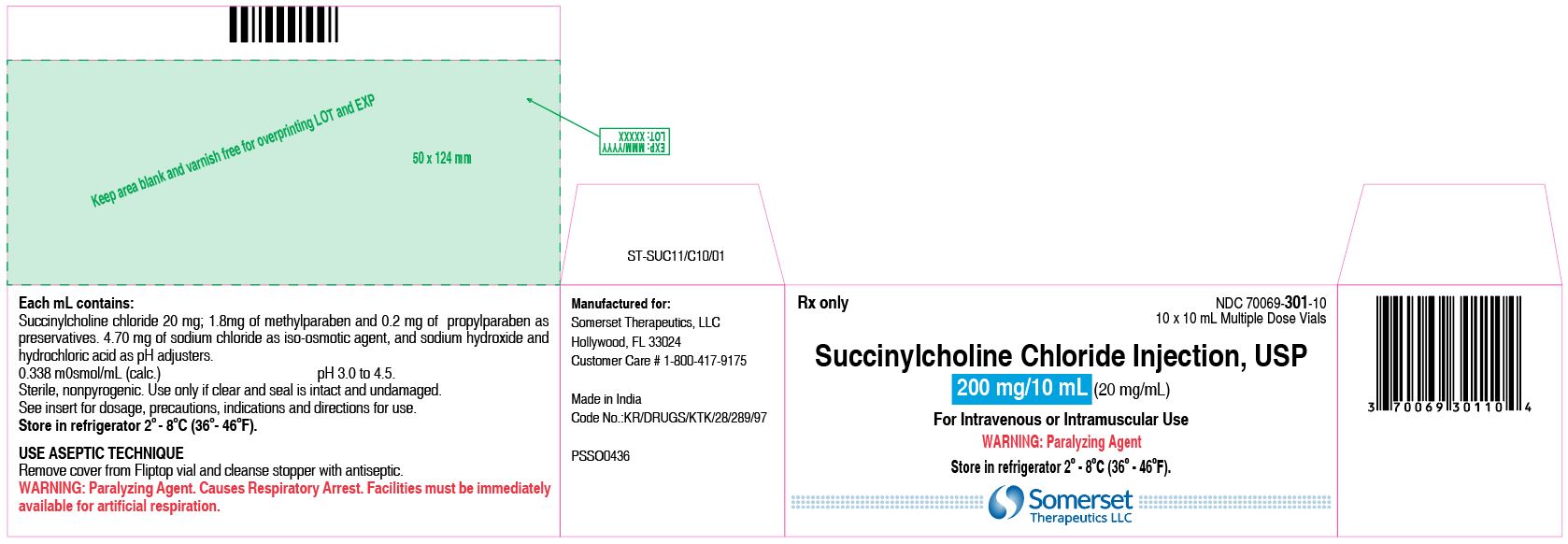 SUCCINYLCHOLINE CHLORIDE INJECTION 20MG/ML, IV, IMV, MDV, 10X10ML